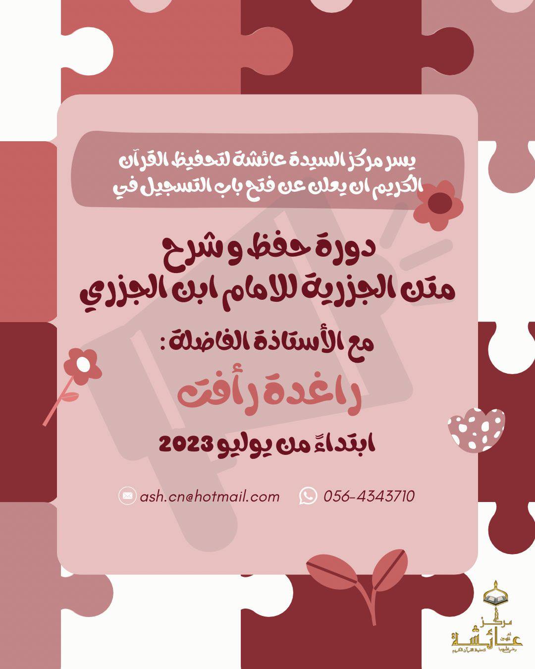 بدأت دورة متن الجزرية للإمام ابن الجزري تقديم الأستاذة: راغدة رأفت