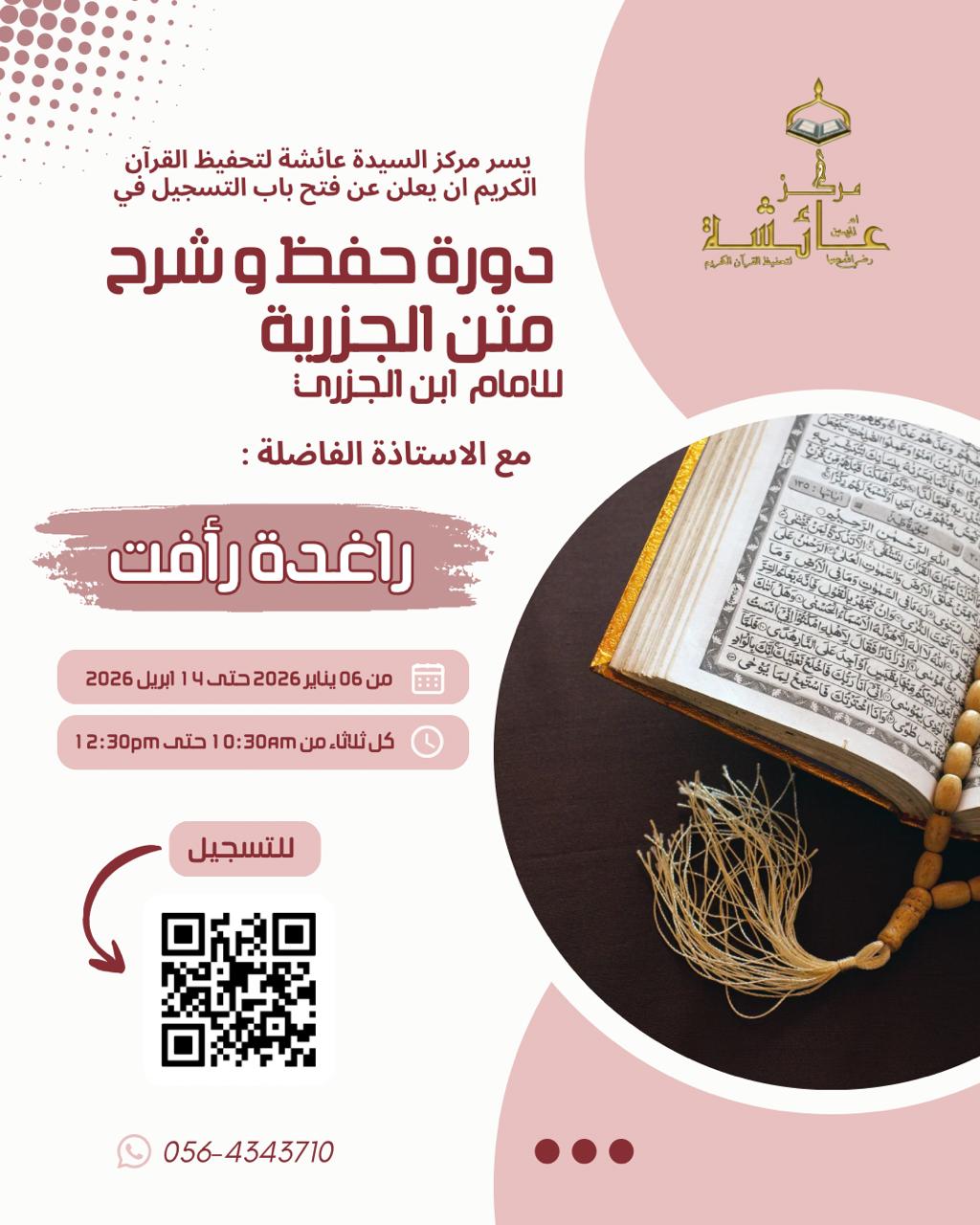 الرئيسيةدوراتنابدأت دورة متن الجزرية للإمام ابن الجزري تقديم الأستاذة: راغدة رأفت بدأت دورة متن الجزرية للإمام ابن الجزري تقديم الأستاذة: راغدة رأفت 15/12/2025